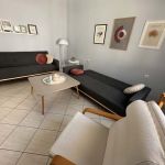 Къща с две спални, всекидневна с два дивана, трапезария, кухня, голяма веранда, собствен паркинг на 250 м от плажа м центъра на Неа Перамос по търговска улица. В близост предлагаме и къща с три и четири спални, подходящи за големи компании.
